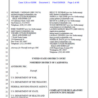 【Anthropic正式起诉美国政府,剧情越看越刺激】看完了Anthropic提交起诉美国政府的起诉书,很有意思: