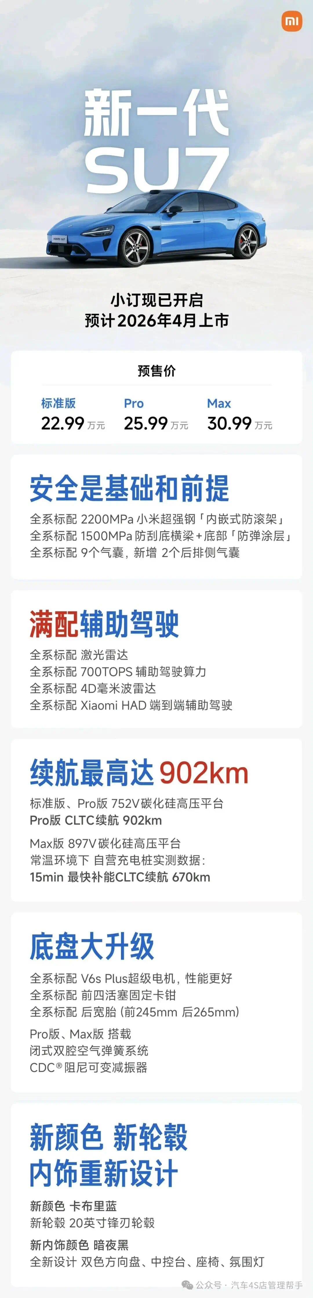 2026款SU7不是小改款,而是补齐短板、全面升维的换代。